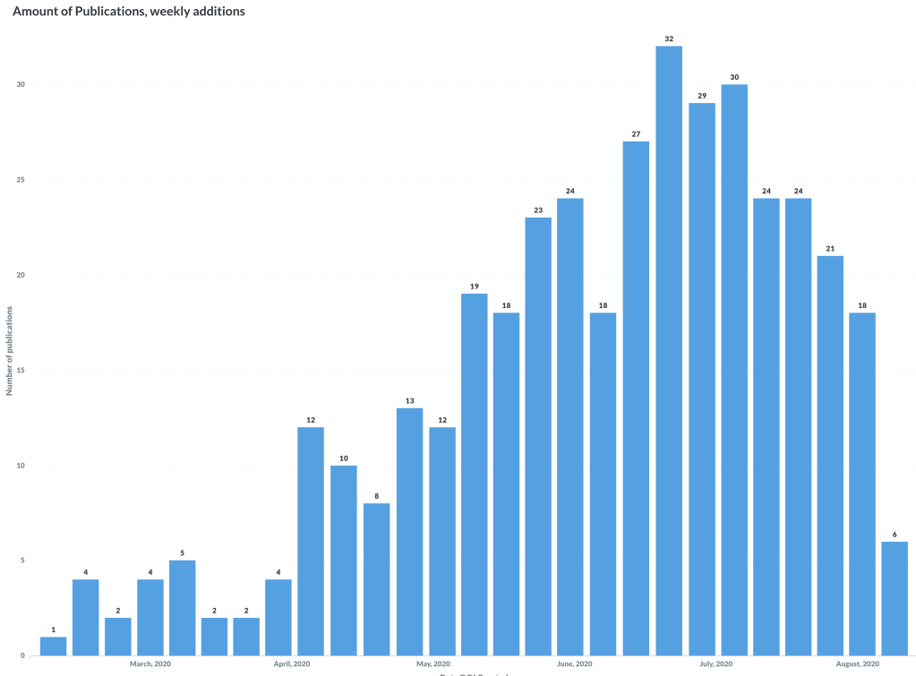 Selbst wenn man berücksichtigt, dass nicht das Publikationsdatum, sondern das Einreichedatum relevant ist und deshalb die Publikationen von 2020 erst mit einer zeitlichen Verzögerung bis ins Jahr 2021 hinein sichtbar werden, ist diese Zahl überraschend tief. Mit etwa 30 Publikationen pro Woche wird man kaum in den Bereich gelangen, das Kontingent auszuschöpfen.