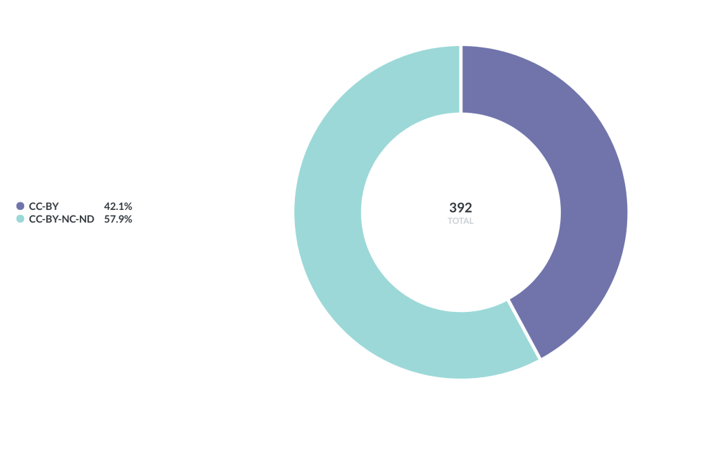 58% der AutorInnen wählen eine CC-BY-NC-ND Lizenz