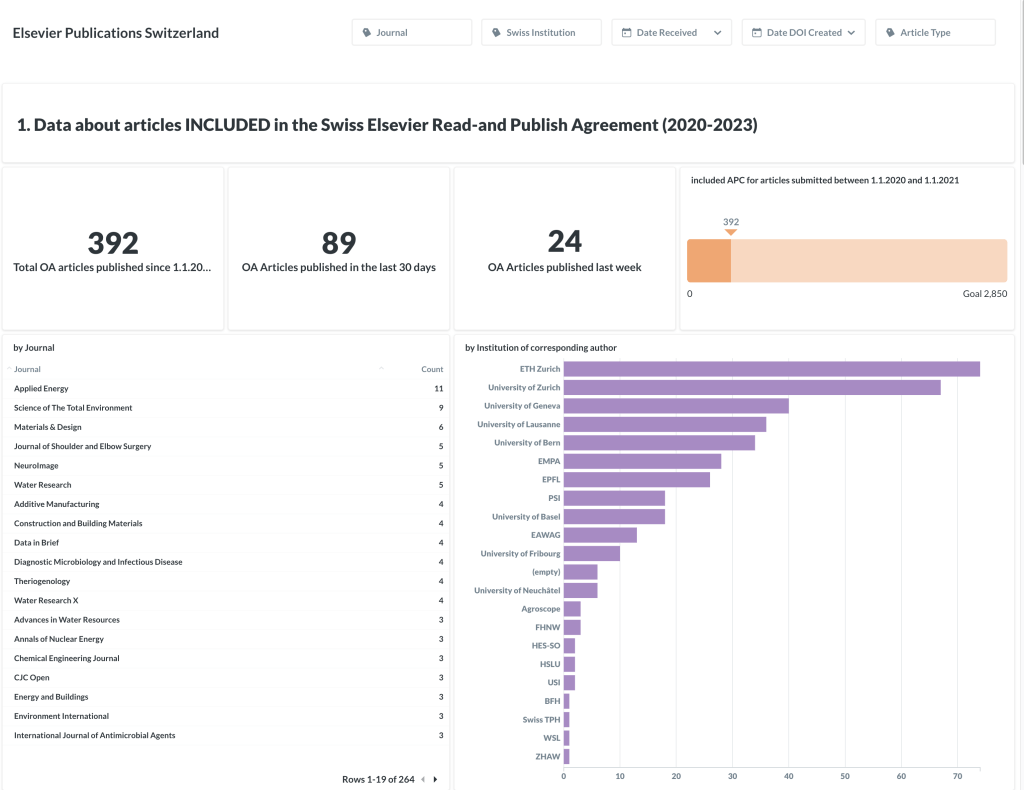 Pro Woche werden zwischen 20 und 30 Schweizer OA Artikel als Teil des Agreements publiziert.